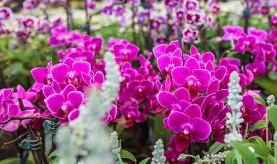 This corner showcases Phalaenopsis orchids cultivated from farms in Japan.