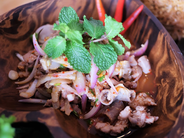 The pork larb has a mild flavor, not too spicy, but the broth is a bit too watery. However, the owner said they will adjust the recipe to make it more delicious and flavorful.