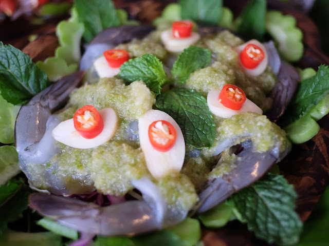 Large, fresh prawns marinated in a tangy seafood sauce.