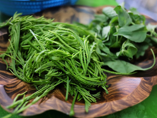 Fresh vegetables ready to be added to the sweet vegetable curry with red ant eggs.