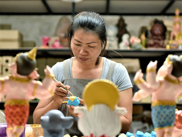 This phrase describes a workshop experience where participants painted "little novice monk" clay dolls. While seemingly simple, the task required meticulous attention to detail and patience to achieve beautiful results. The workshop lasted approximately 3-4 hours, and participants expressed pride in witnessing the dedication of the artisans and the success of artists who received opportunities through the "KING POWER THAI POWER พลังคนไทย" project.