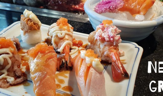 The other dish that impressed me was the sushi. I started with the salmon roll, which was quite large and had a generous amount of rice and salmon. The salmon sauce was delicious, with both sweet and spicy options (although I didn't find the spicy option to be very spicy). The salmon itself didn't have much marbling, but it tasted good. My favorite was the shrimp sushi, which used small river prawns, making it larger than sushi from other places. It was a satisfying mouthful. I won't describe it further; you'll have to try it yourself to see how good it is. As for the wagyu, as I mentioned earlier, I found the meat difficult to chew, so I swallowed large pieces whole, almost choking. Therefore, I would only recommend the salmon and shrimp.