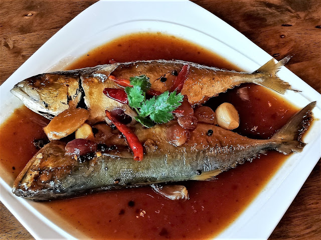 **Sardine Satay**, a signature dish of the Mae Klong people, is a rare traditional recipe that uses large sardines. The preparation involves simmering the fish over low heat for approximately two days, resulting in tender flesh and bones. The succulent fish is enjoyed with a flavorful broth that balances salty, sweet, and tangy notes. Served with steaming white rice and roasted chili peppers, this dish offers an unforgettable culinary experience. Highly recommended, do not miss this opportunity to savor this authentic delicacy.