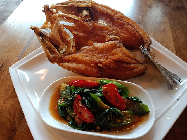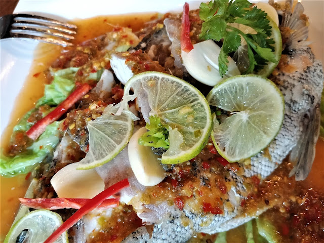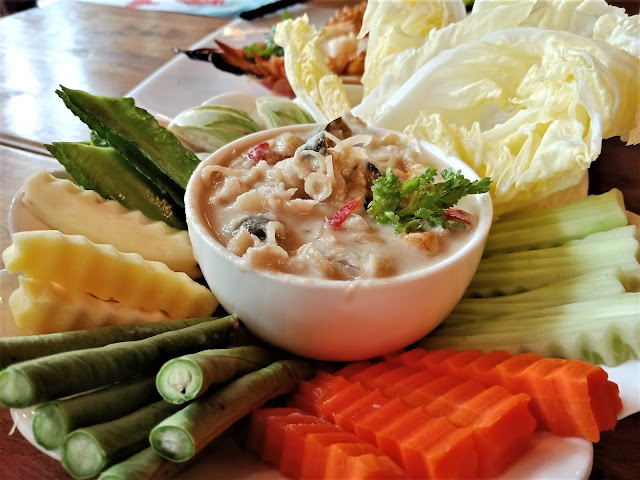 Steamed crab meat with curry paste served with fresh, crisp vegetables. The curry paste is creamy and the aroma of the spices is evident. Just the smell tells you that this is an authentic curry paste. The best part is the crab meat, which is fresh and comes in large chunks. It's a satisfying dish.