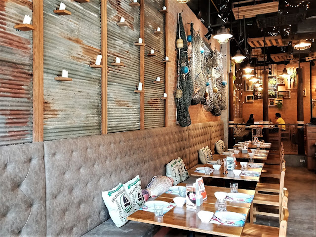 Stepping into the restaurant, one is greeted by a warm and inviting atmosphere. The décor is dominated by earthy brown tones, with a touch of artistic flair. Fishing equipment is cleverly repurposed as decorative elements, adorning various corners and even the ceiling. This unique approach subtly conveys the establishment's professionalism in seafood, emphasizing its commitment to fresh, locally sourced ingredients.