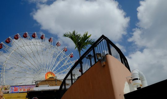 Driving in Okinawa was unlike anything I've experienced in Japan. It felt more like driving in New Zealand, with stunning views and lush nature. As we cruised along, we stumbled upon the AMERICAN VILLAGE, a bustling tourist and commercial district dating back to the American occupation. We took a break and enjoyed a coffee at Starbucks.